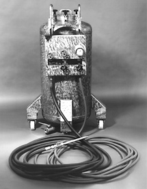 Weil 1973 keine Schaumapplikations-Geräte zur Verfügung standen, welche dem Firmenanspruch genügten, wurde ein eigenes Gerät entwickelt und hergestellt. Es gab zwei Versionen, 75 Ltr. und 150 Ltr. Fassungsvermögen. Das ganze Druckfass bestand aus Chromnickelstahl V4A! Bis heute sind noch Geräte im Einsatz und können von uns nach wie vor revidiert werden, da ein Ersatzteillager vorhanden ist.